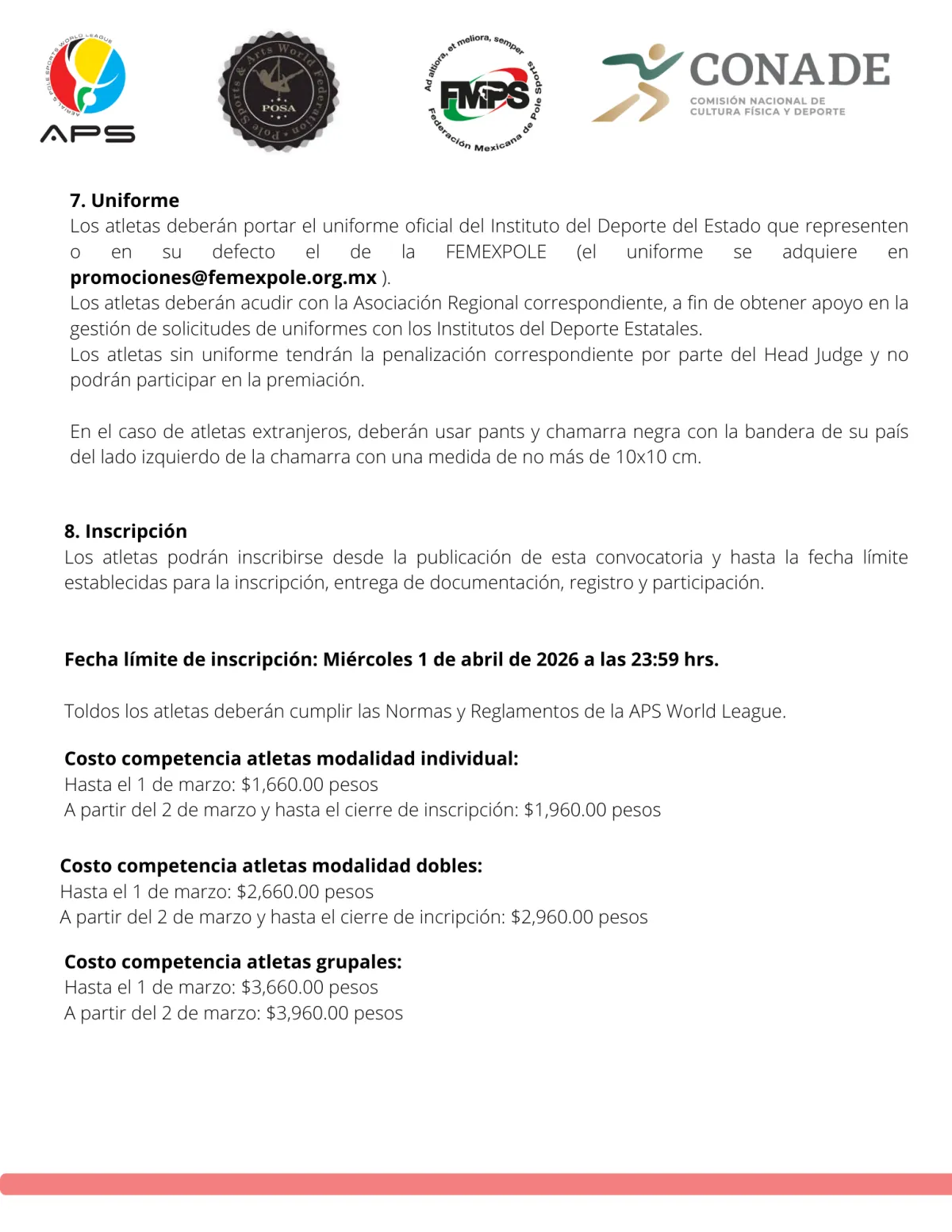FECHA LÍMITE DE REGISTRO: